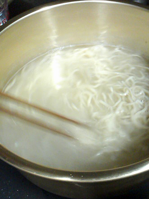 味見もしたいので細めんの方はさっさと茹でちゃいましょ。