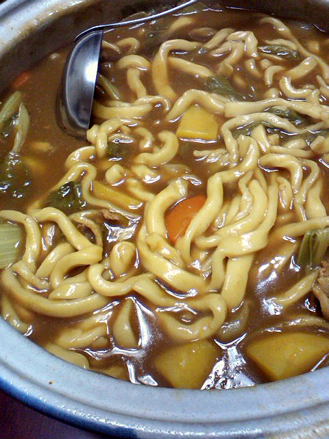 手打ちうどんとカレー鍋を合体させたのを食べてたんですよ。