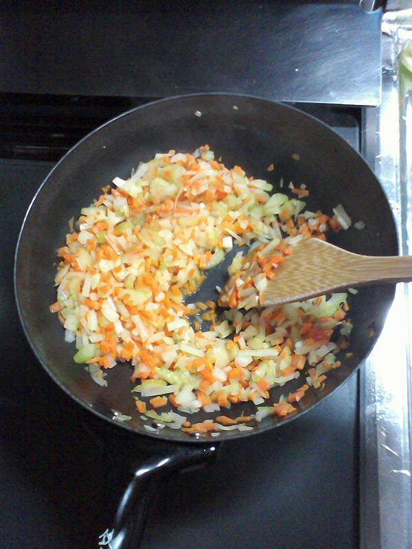 これらをみじん切りにしたものを多めのオリーブ油でひたすら炒めます。