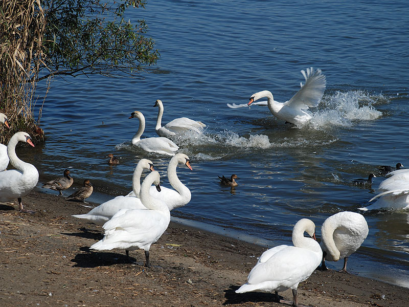 白鳥だけ逃げててまわりの小さいのは割と平気に泳いでたのがウケたwww