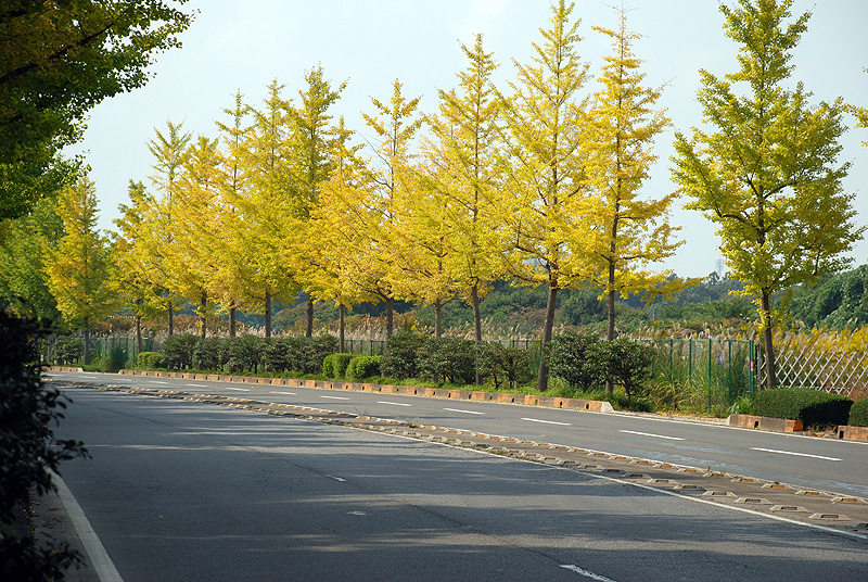 つくばへ入るといい感じに色づいているイチョウの木を発見!