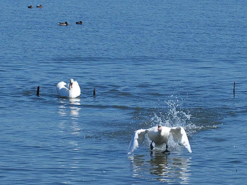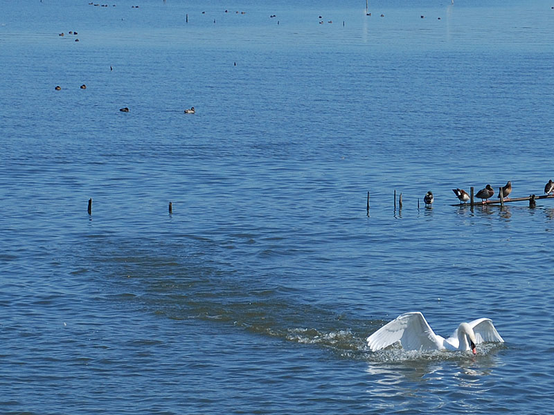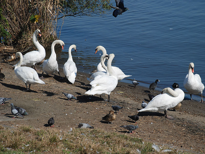 白鳥だけ逃げててまわりの小さいのは割と平気に泳いでたのがウケたwww