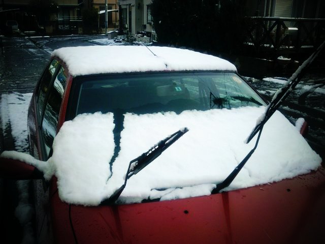 ウチのプジョーくんに雪が積もってるヤツとか。