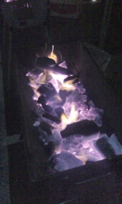 夕方から火起こし。BBQコンロ3台分。