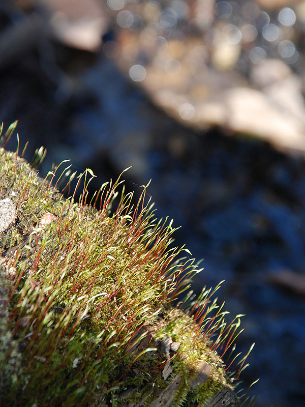園内を流れる小川のわきの岩の苔にも春がきてました。