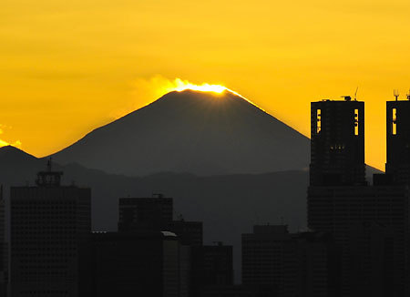 【摩天楼に輝く「ダイヤモンド富士」】